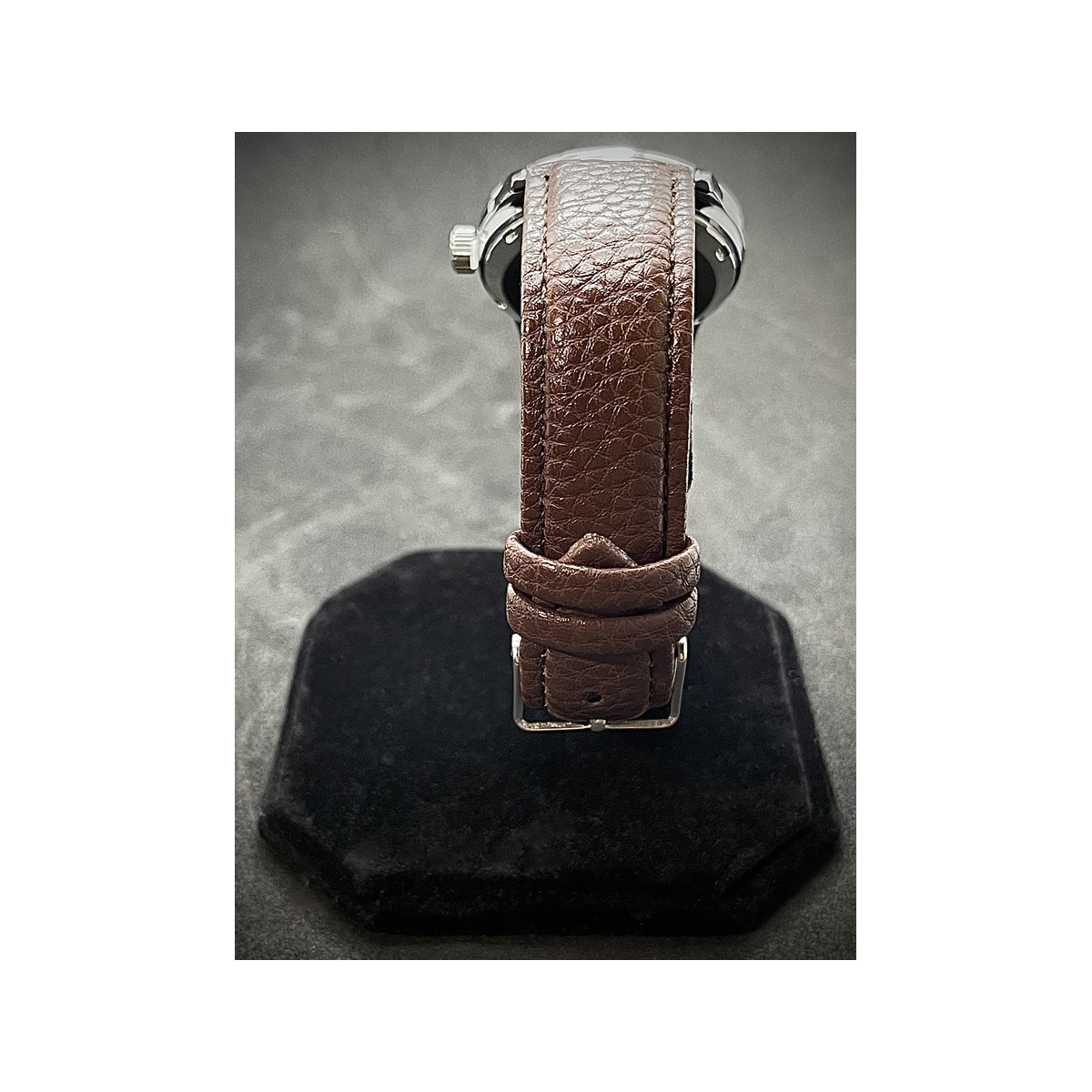 Der verstellbare Riemen ist aus braunem PU-Leder und hat einen authentischen Kieseleffekt.