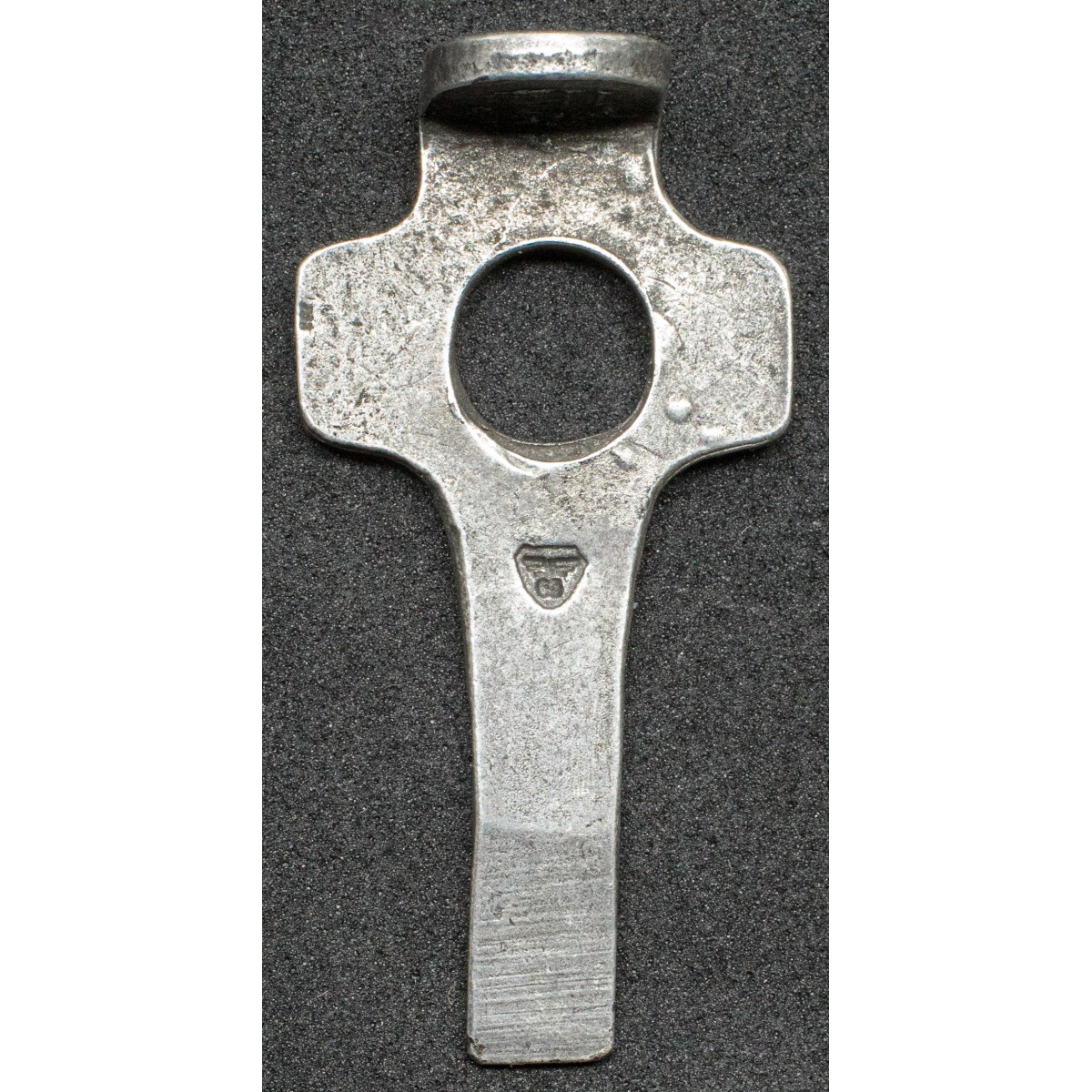 Gefertigt aus gehärtetem Stahl, besitzt das Werkzeug eine kompakte und funktionale Form, mit der der Magazinboden bzw. der Ladehebel des Magazins nach unten gedrückt werden kann.