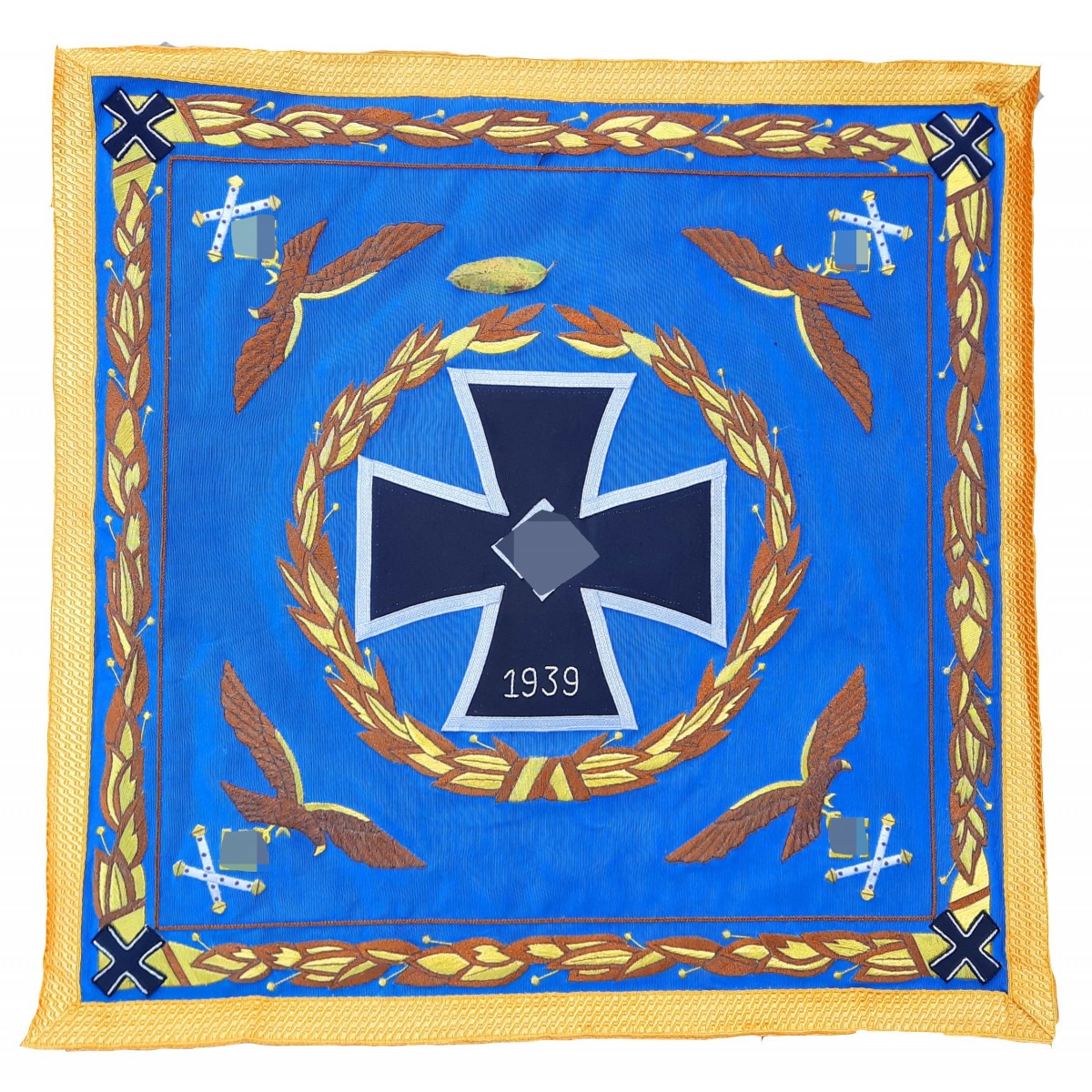 Diese Fahne ist das Ergebnis komplizierter Stickarbeiten und ein exklusives Objekt für Ihre Sammlung.