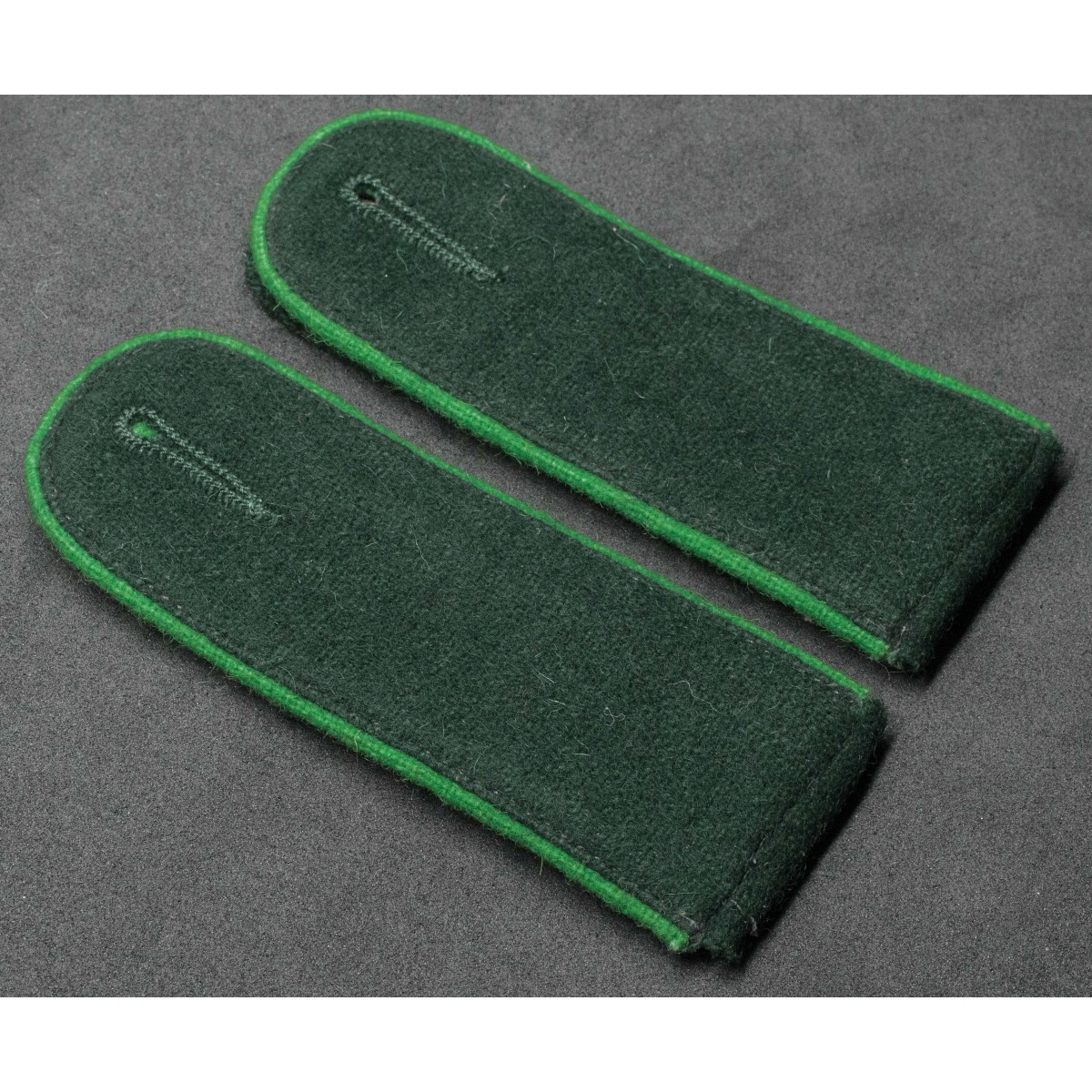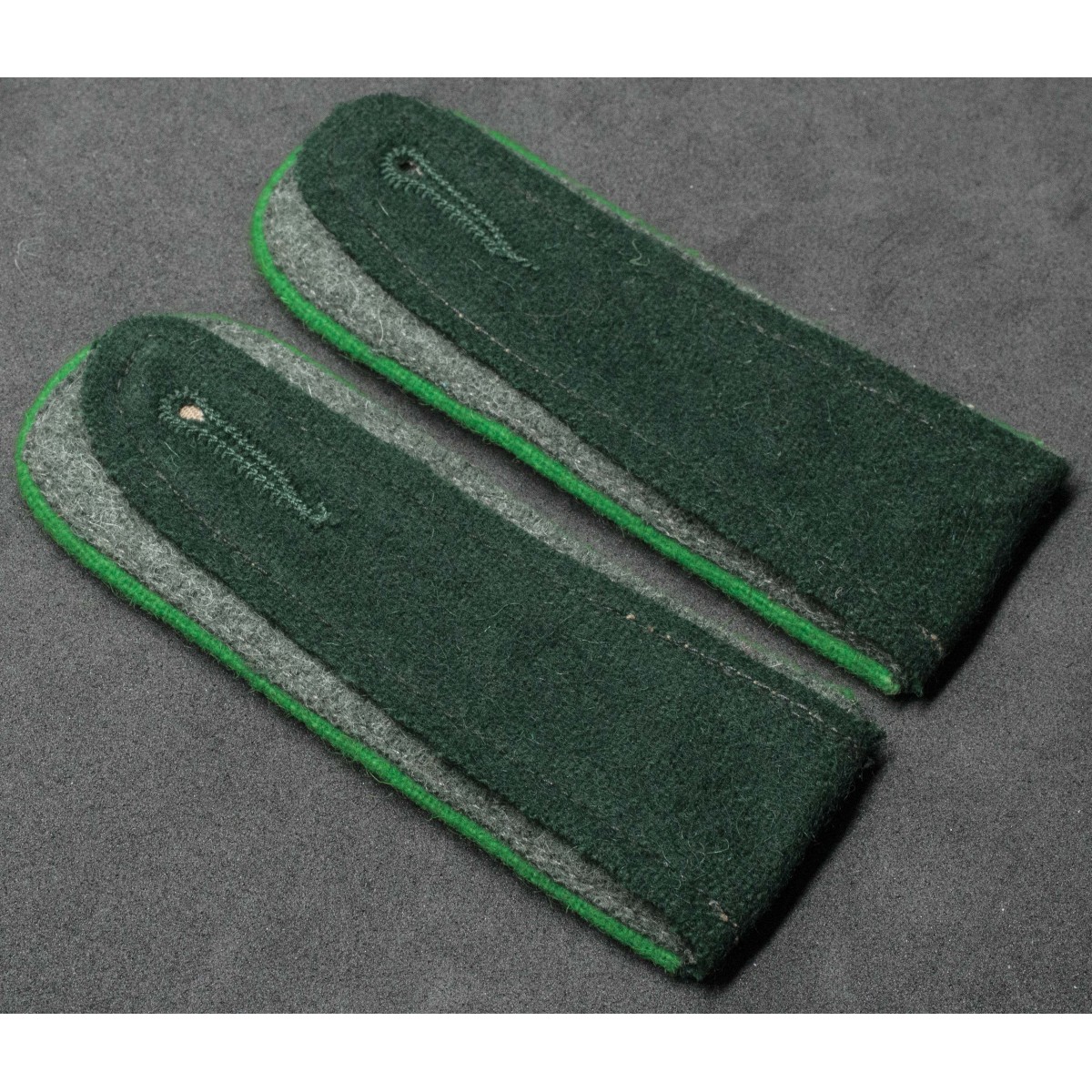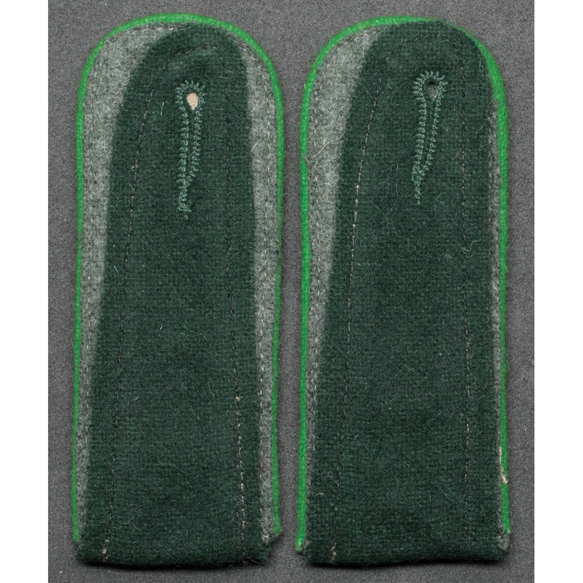 Schulterklappen aus flaschengrünem Tuch mit entsprechender Paspelierung stellen eine erkennbare Variante innerhalb der Uniformabzeichen der deutschen Grenadiertruppen dar.