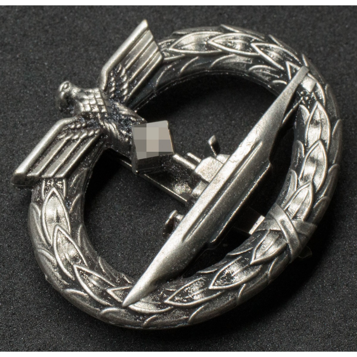 Das U-Boot-Kriegsabzeichen des Zweiten Weltkriegs wurde 1939 eingeführt und 1941 überarbeitet. Es wurde U-Boot-Besatzungen der Kriegsmarine nach zwei Feindfahrten oder für besondere Verdienste verliehen. Motiv: U-Boot im Eichenlaubkranz, gekrönt vom Hoheitsadler mit Hakenkreuz.