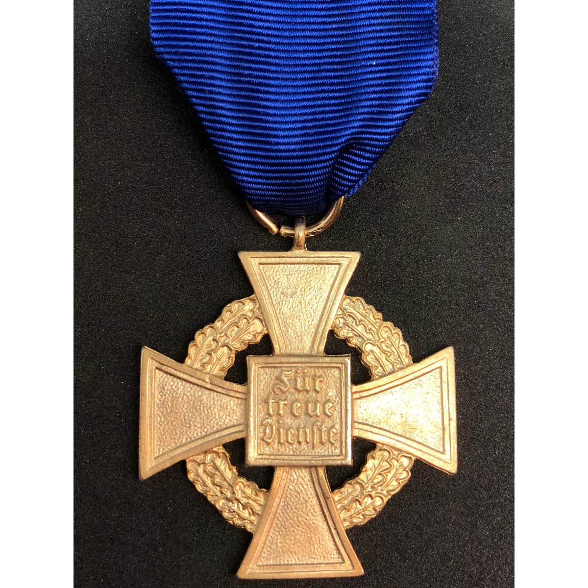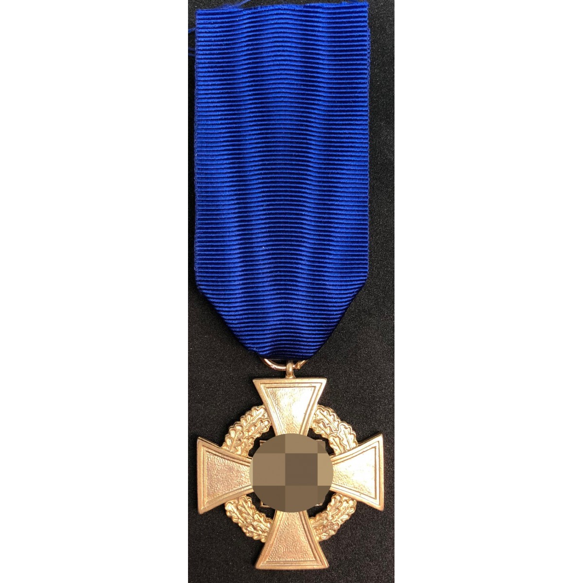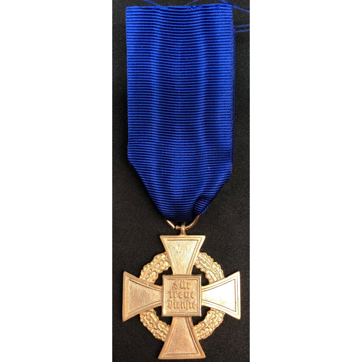 The first class award was for 40 years of service was a gold cross, with a gold wreath and a black enameled swastika in the center of the cross.