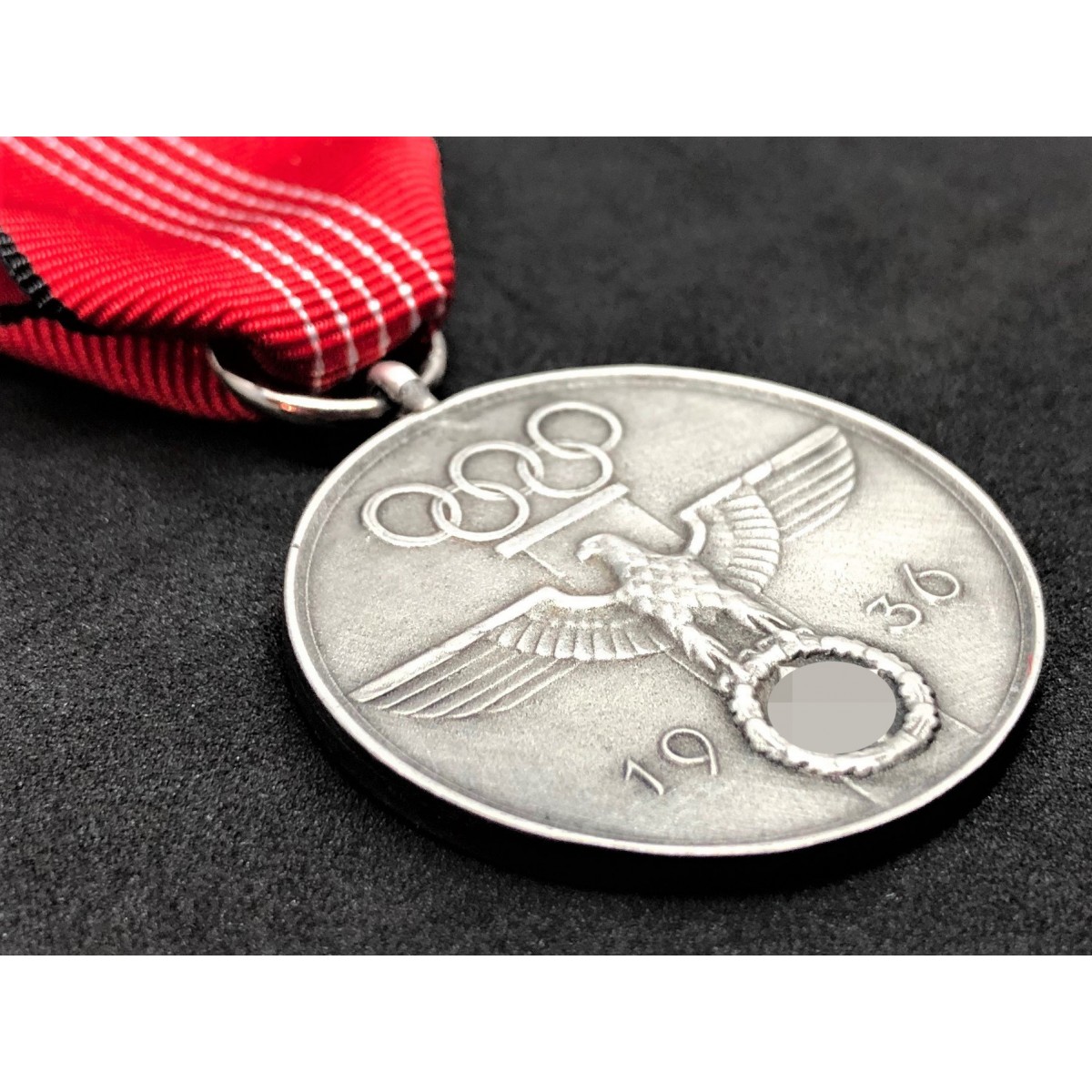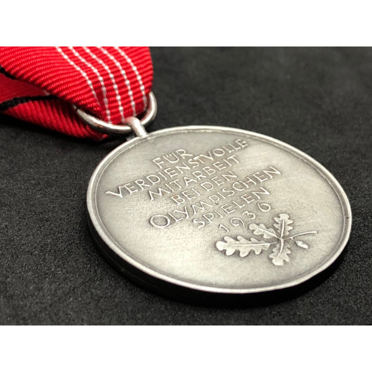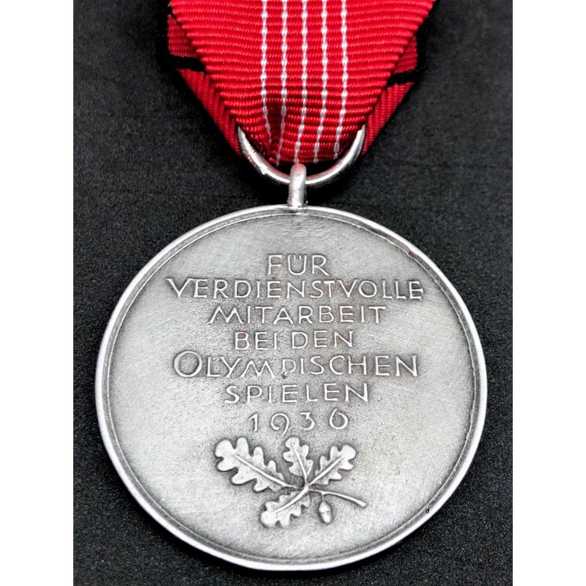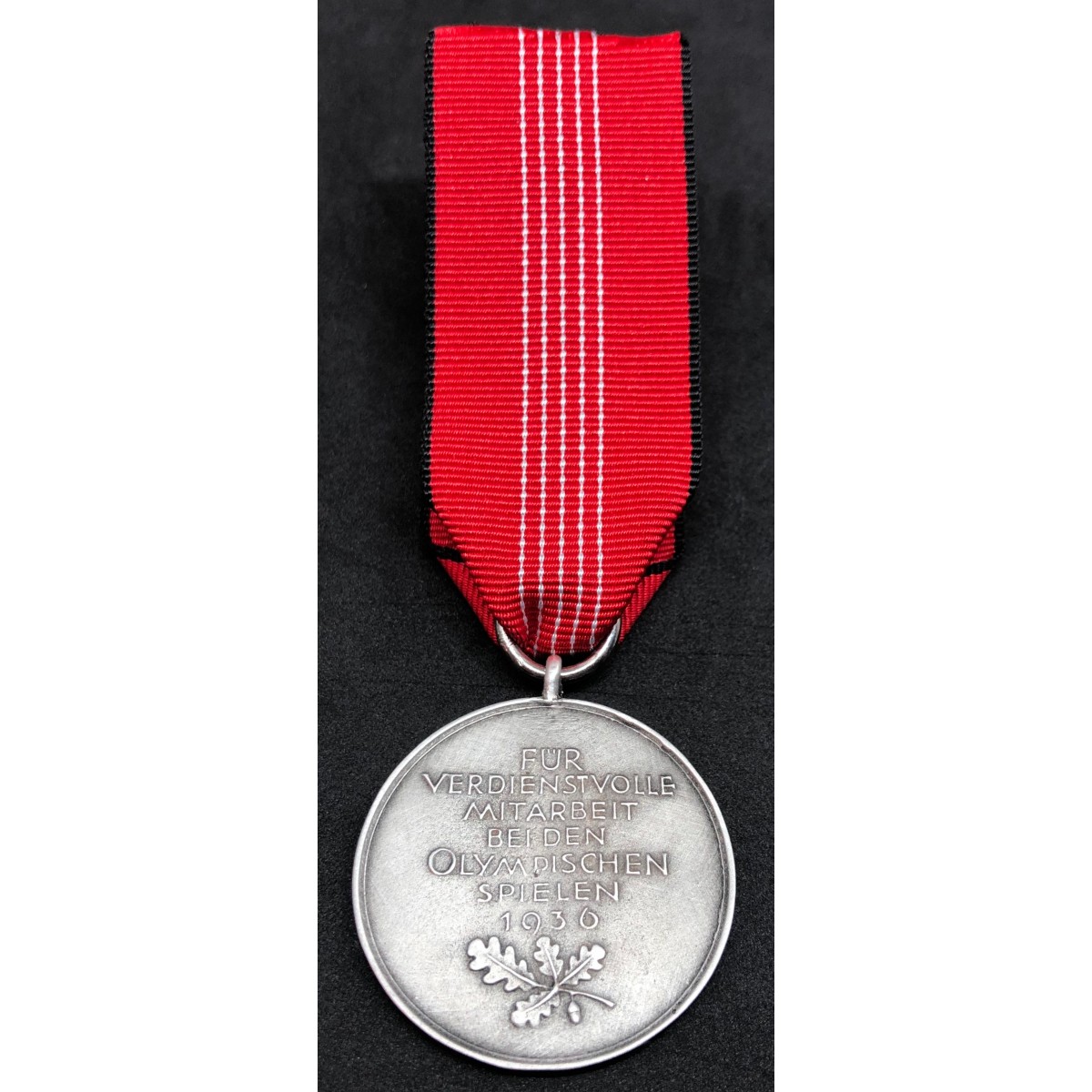 Mit der Verordnung vom 31. Juli 1936 (RGBl. I 577) wurde zusätzlich zum Olympia-Ehrenzeichen eine Erinnerungsmedaille für die Olympischen Spiele 1936, die Olympia-Erinnerungsmedaille, gestiftet. Sie zeigt im Avers die steinerne Säule des Olympiastadion Berlin. Darüber sind die 5 olympischen Ringe sowie die Jahreszahl 1936 erhaben eingeprägt. Vor der Säule ist mittig der Reichsadler mit ausgebreiteten Schwingen zu sehen, der in seinen Klauen einen Lorbeerkranz hält, in dem sich ein auf dem Kopf stehendes Hakenkreuz befindet. Auf der Rückseite steht in Großbuchstaben FÜR VERDIENSTVOLLE MITARBEIT BEI DEN OLYMPISCHEN SPIELEN 1936 zu lesen. Darunter befinden Eichenblätter. Die Maße der Medaille betragen 3,6 cm (Höhe), 3,2 cm (Band) (Breite), 3,6 cm (Durchmesser).