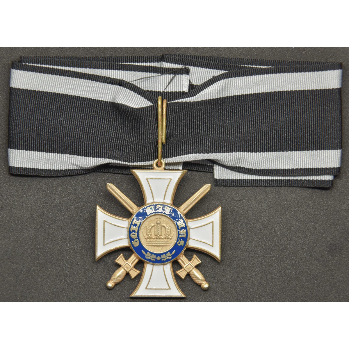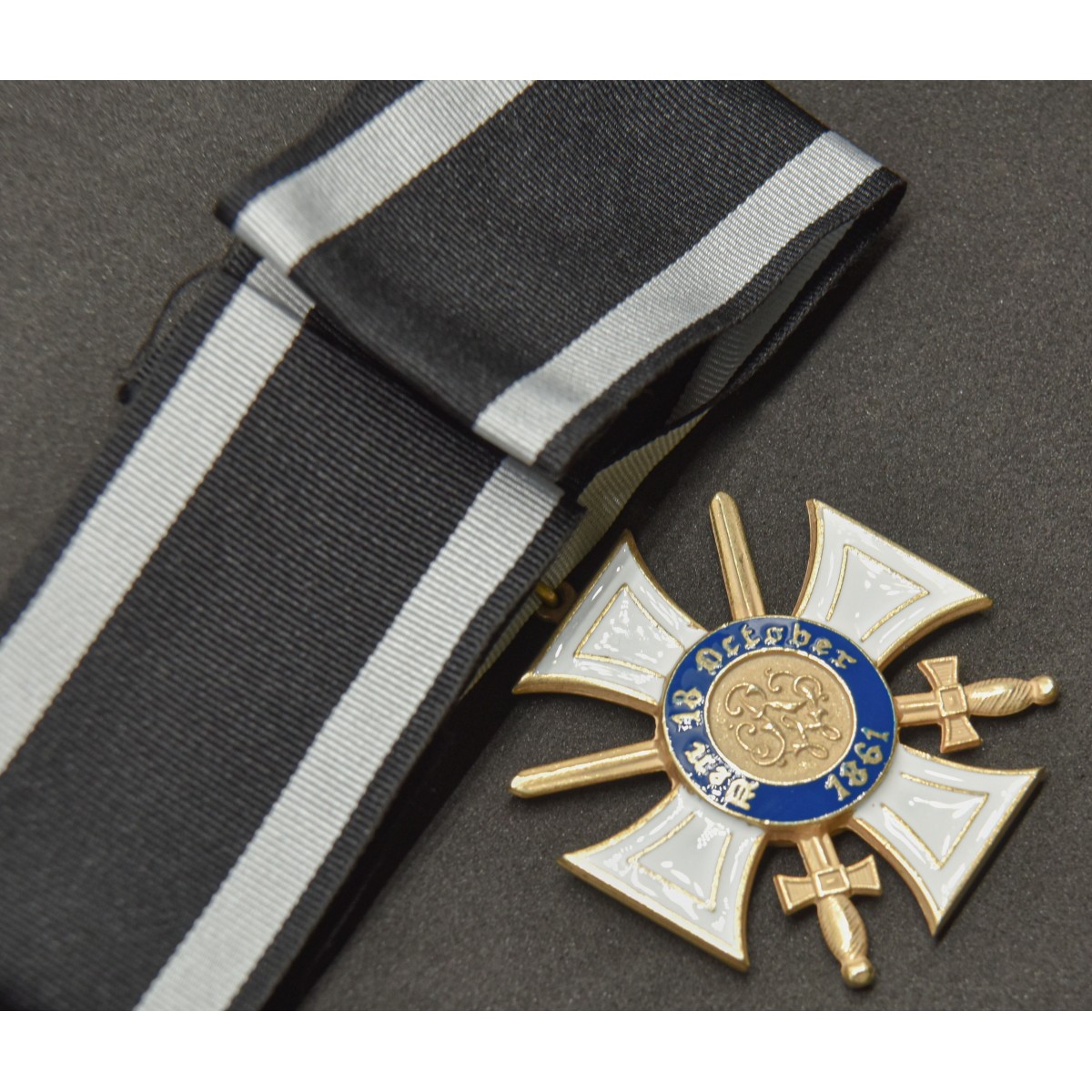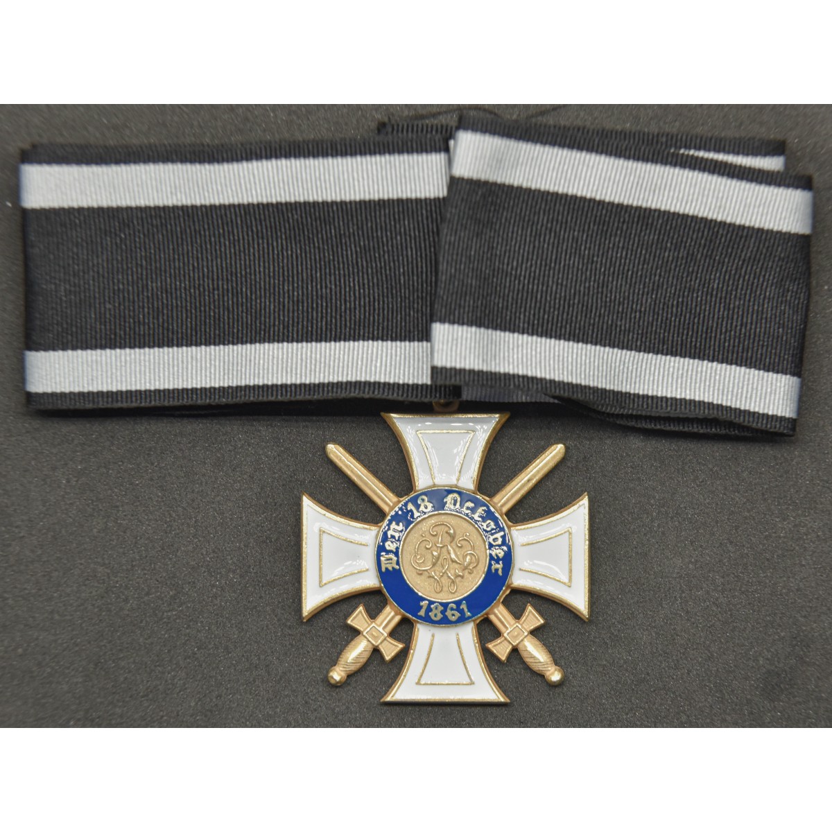 Die gekreuzten Schwerter verliehen der Dekoration ihre militärische Bedeutung: Sie kennzeichneten den Orden klar als Auszeichnung für Taten im Krieg und unterschieden ihn damit von zivilen Ehrungen. Das goldene, weiß emaillierte Kreuz mit der preußischen Krone wurde auf der Brust getragen und machte den Träger sofort erkennbar als Mann von Rang, Mut und kaiserlicher Anerkennung.