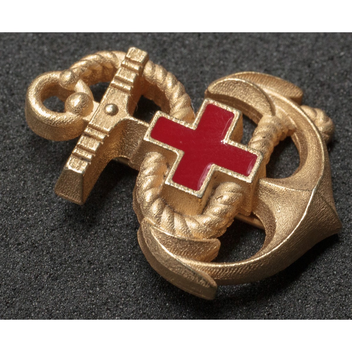 Aus Metall gefertigt und mit Stiften oder Nadel am Barett befestigt, symbolisierte es die entscheidende Rolle der Sanitäter beim Beistand der Stoßtrupps und bei Rettungseinsätzen auf See.