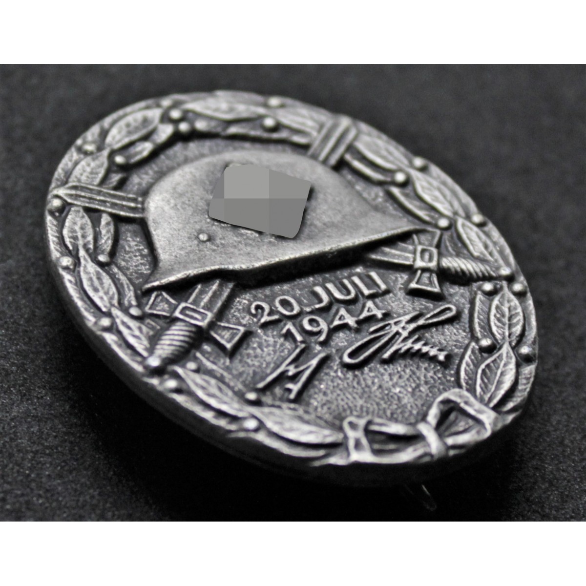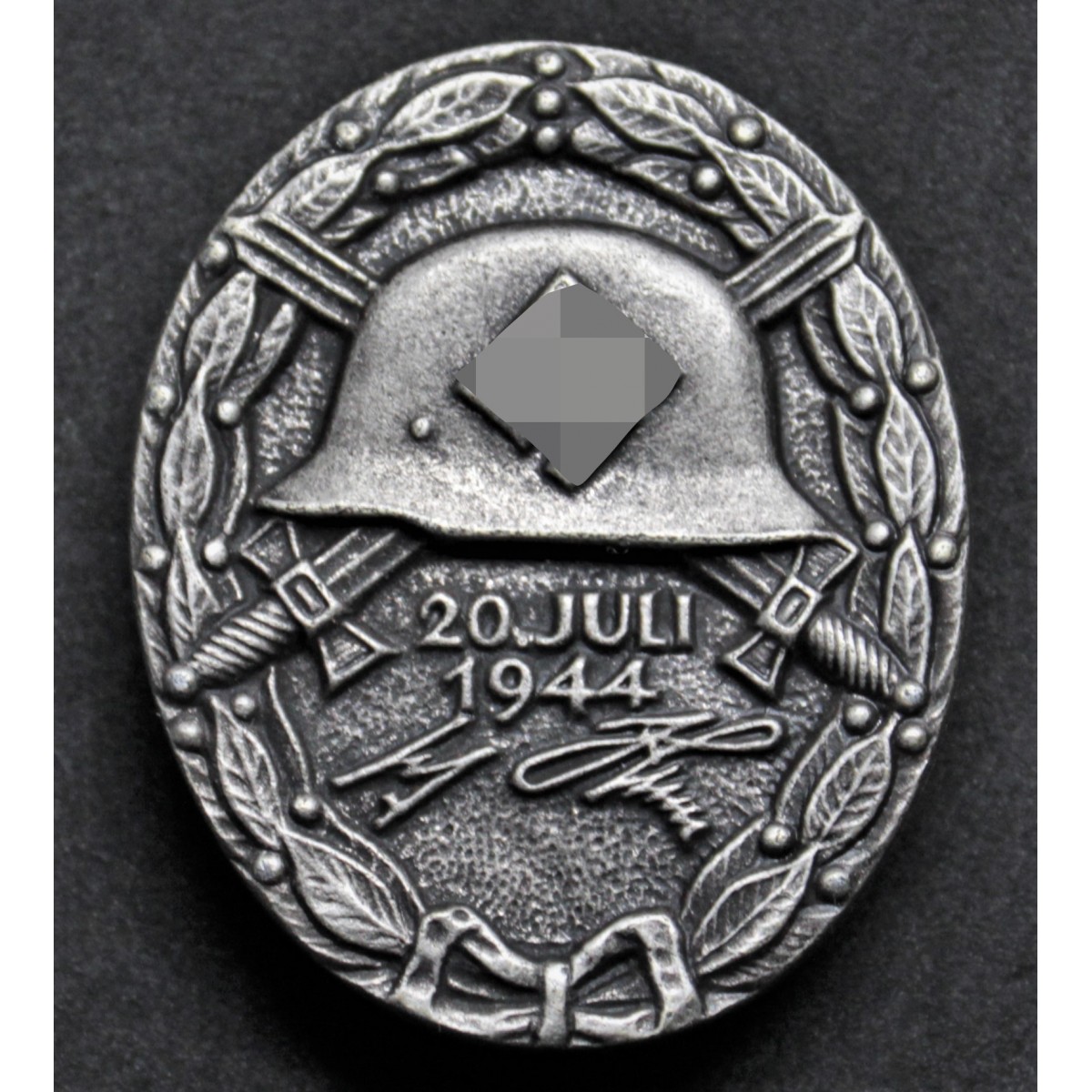 Das Verwundetenabzeichen 20. Juli 1944 wurde im August 1944 von Adolf Hitler gestiftet und an alle Personen verliehen, welche beim Attentat vom 20. Juli 1944 Verletzungen erlitten oder getötet wurden. Die massiv aus Silber gefertigte Auszeichnung ähnelt dem Verwundetenabzeichen von 1939. Unter dem Stahlhelm ist jedoch zusätzlich die zweizeilige Inschrift 20. JULI 1944 zu lesen sowie das Faksimile von Hitlers Autogramm.