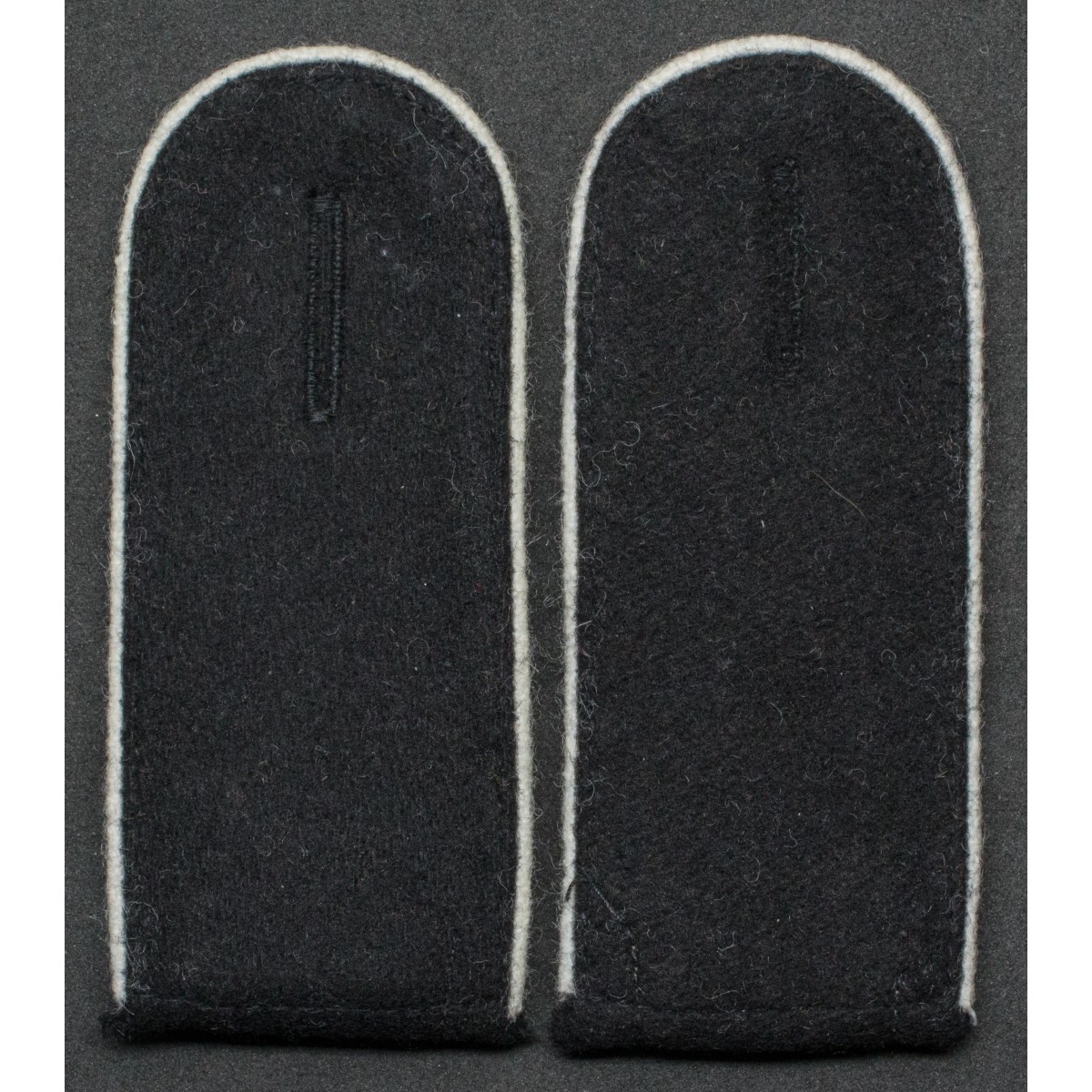 Pair of shoulder boards for Enlisted Men (EM) of the Wehrmacht infantry. Made of black wool with white piping, the traditional branch color of German infantry. Intended for field and service uniforms, identifying soldiers serving in infantry units during the Second World War.
