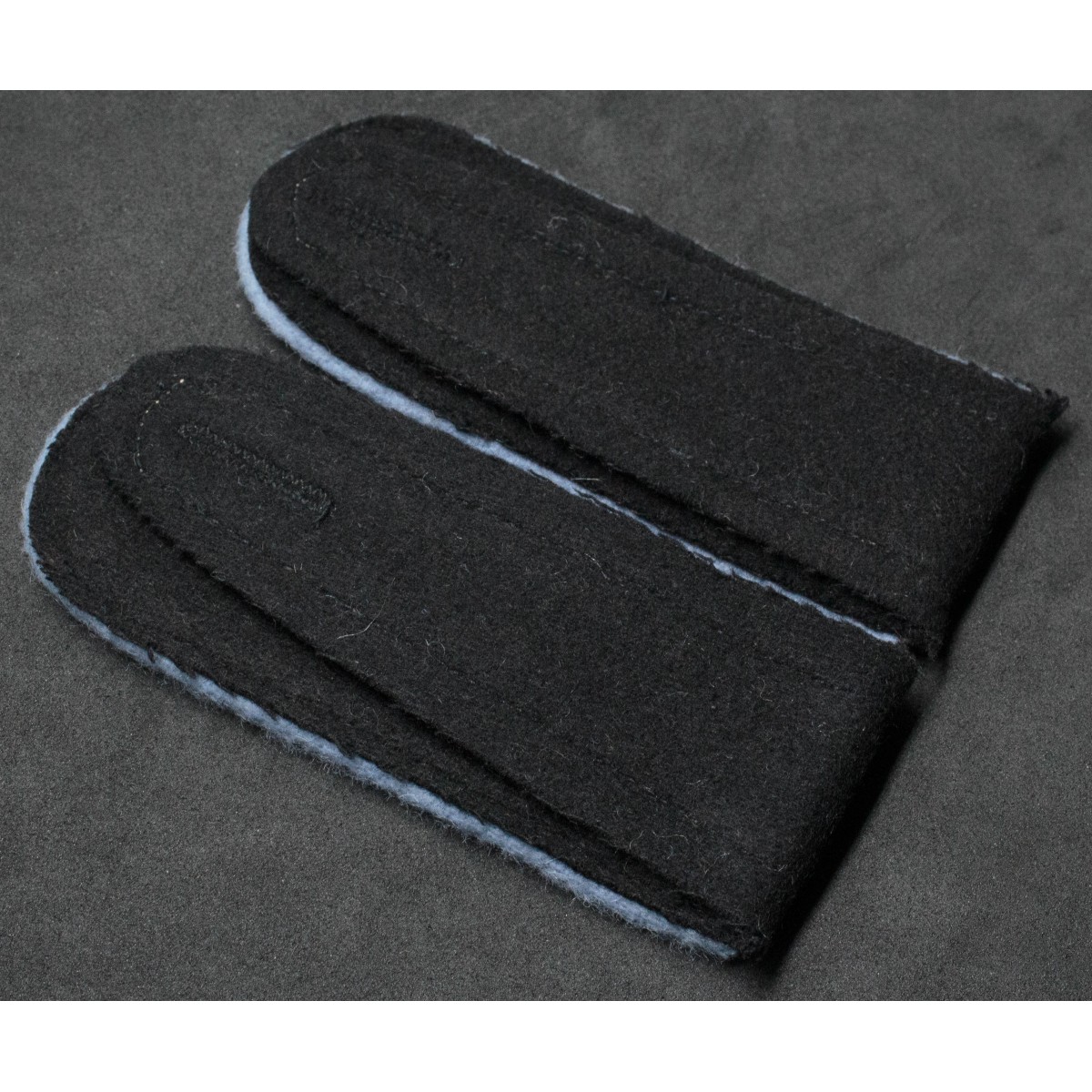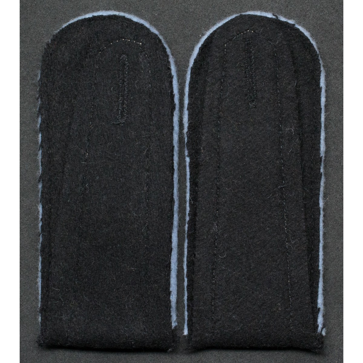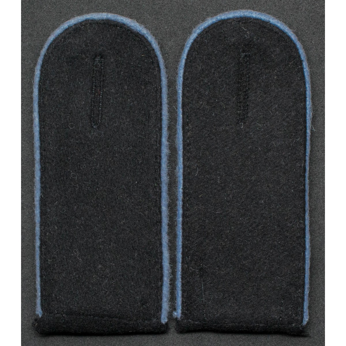 Pair of shoulder boards for Enlisted Men (EM) of the Wehrmacht transport units. Made of black wool with light blue piping, the branch color associated with transport and logistics troops. Intended for field and service uniformsworn by personnel serving in transport formations during the Second World War.