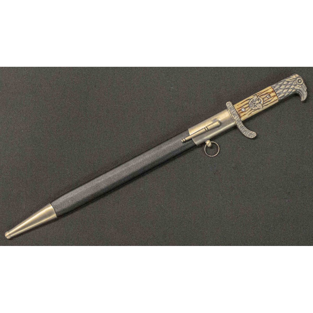 Following the administrative consolidation of the German police under Heinrich Himmler in 1936, police officials incorporated SS insignia and ceremonial equipment into their uniforms. However, richly decorated variants with bronze mounts and elaborate etching are more commonly associated with presentation or privately acquired pieces rather than strictly regulation service weapons.