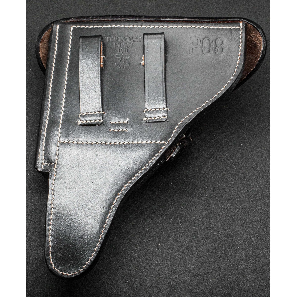 Rigid P08 holsters today serve as technical evidence of German military leather craftsmanship and illustrate the evolution of handgun carrying equipment in the early 20th century.