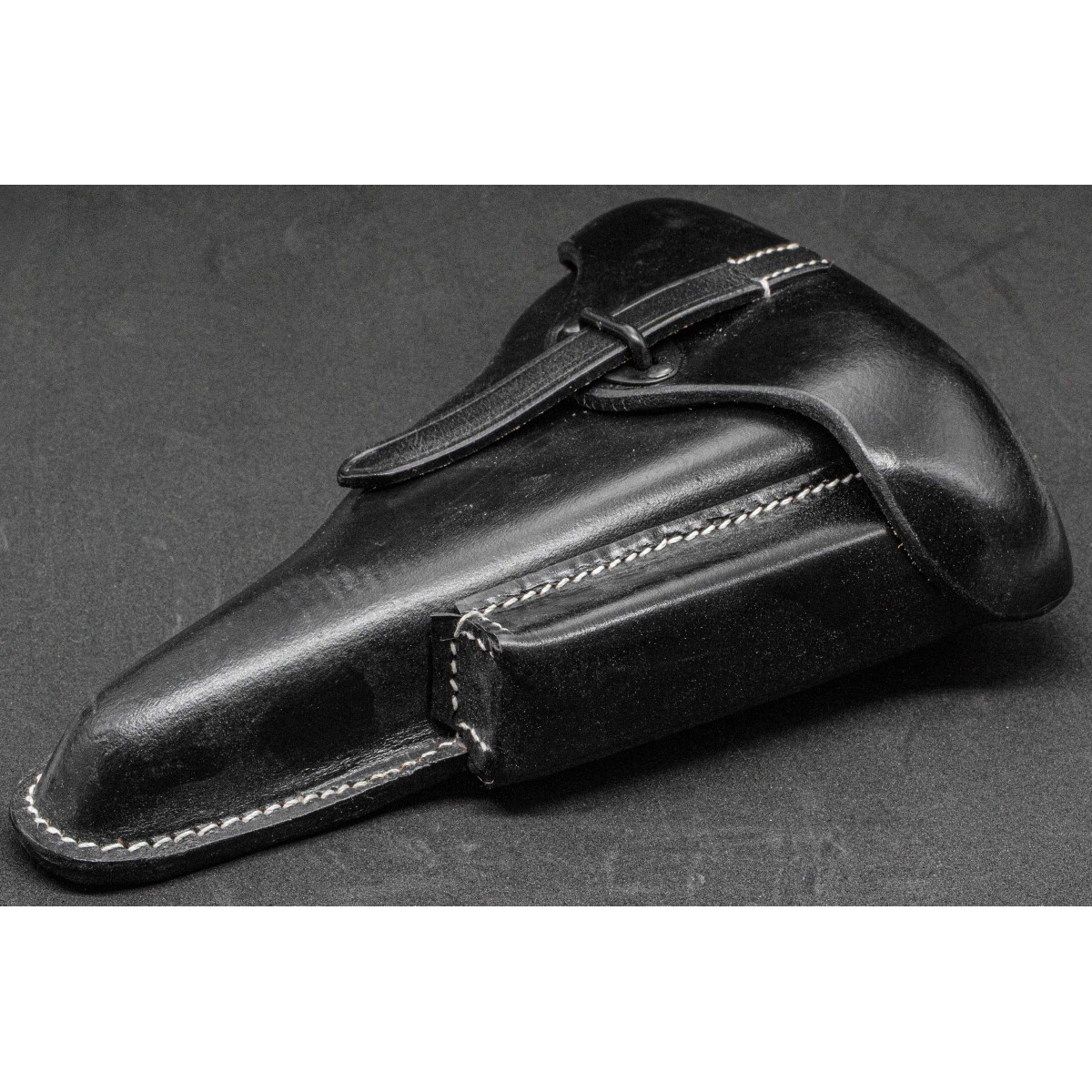 The black leather finish is typical of wartime production, particularly in later years, when manufacturing processes were increasingly optimized for efficiency. These holsters represent a clear example of functional military design combined with industrial simplification, characteristic of German equipment during the Second World War.