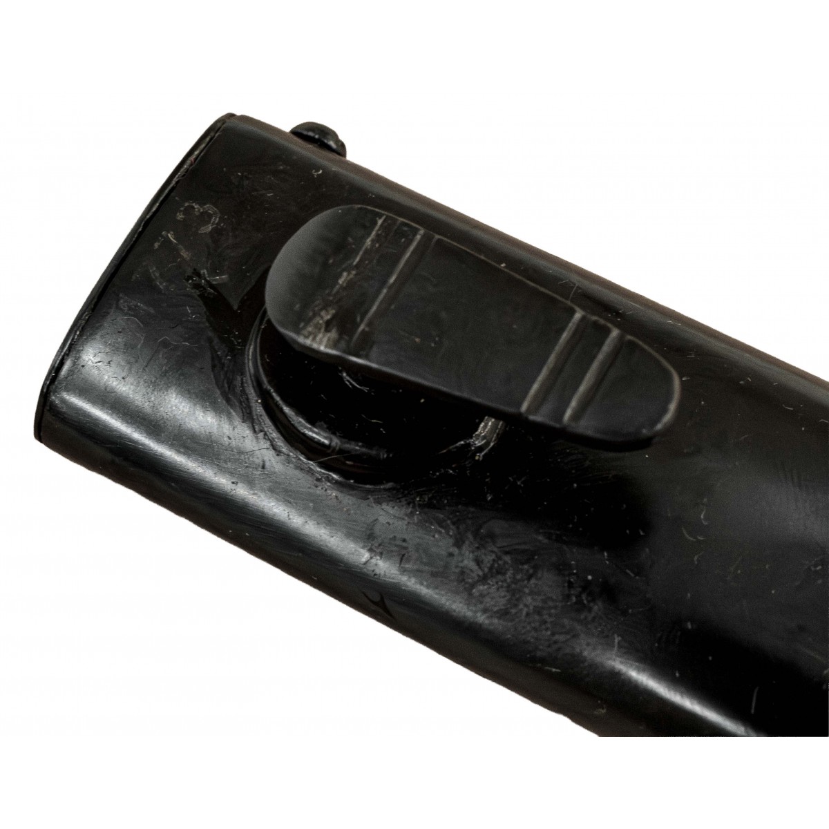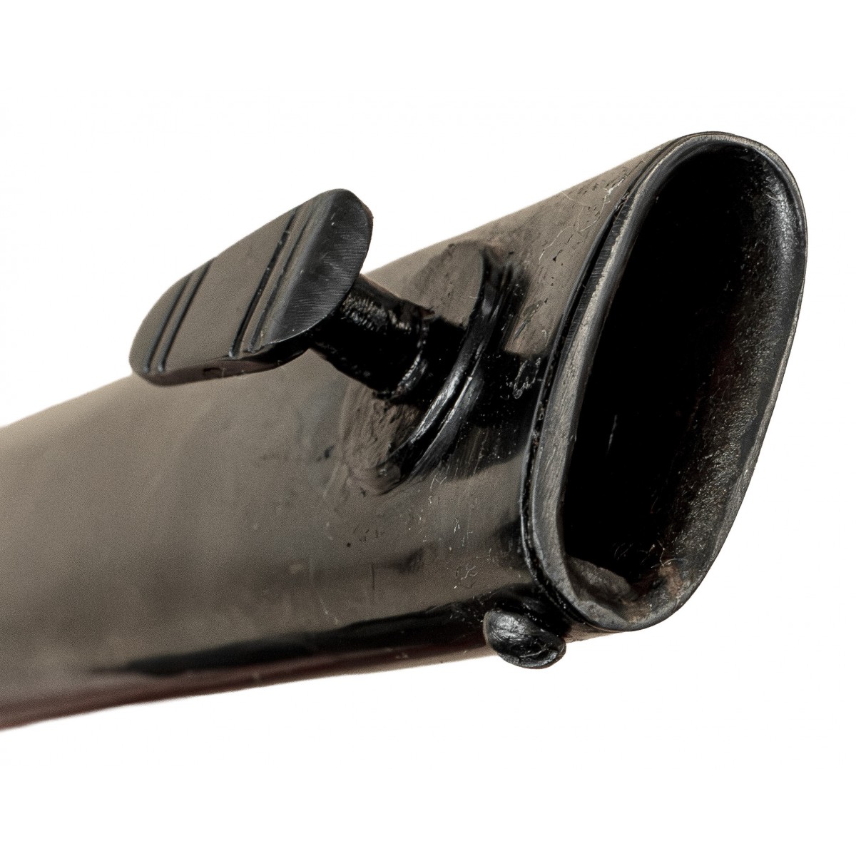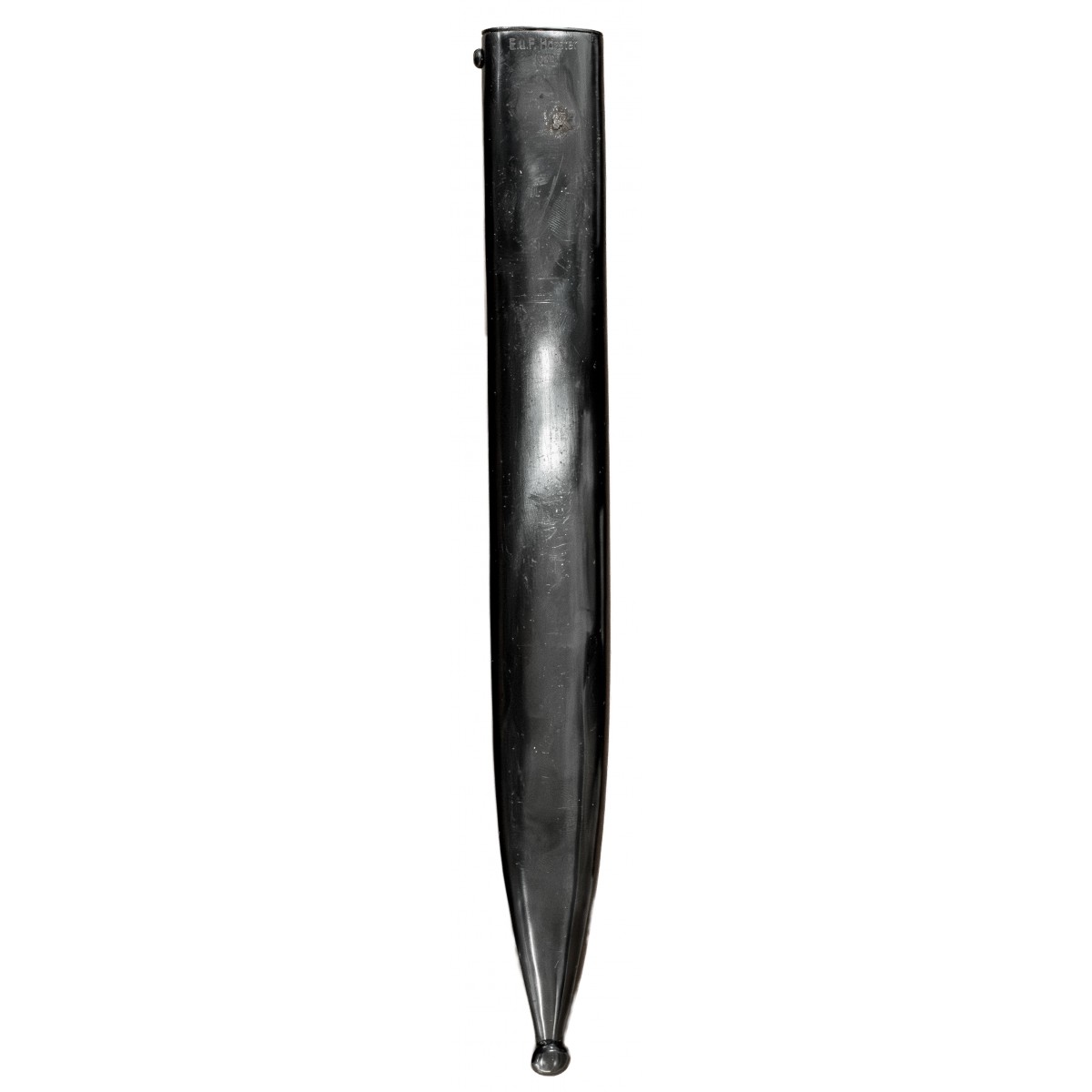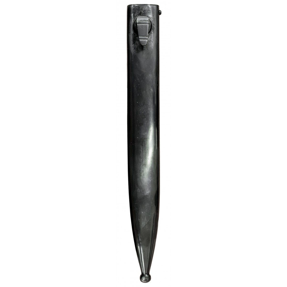 Steel scabbard for the Karabiner 98k bayonet, used by the German Wehrmacht during the Second World War. Typically made of blued steel with reinforced tip, designed to carry the bayonet safely on the soldier’s equipment belt using a leather frog attachment.
