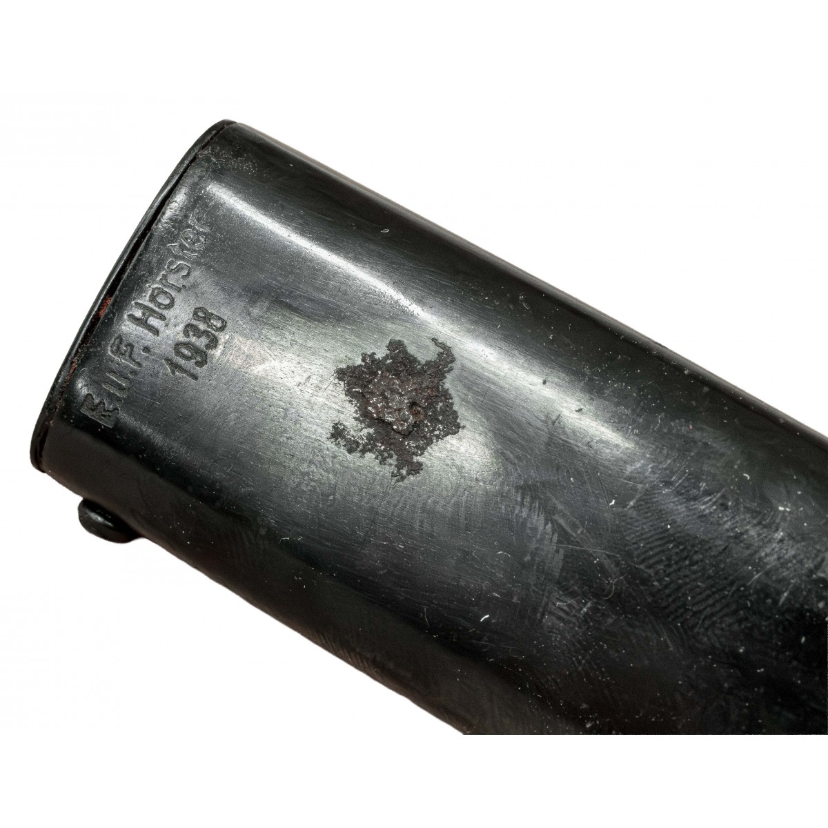Scabbards of this type were manufactured in large quantities by various German military equipment producers, often marked with maker codes, serial numbers, or military acceptance stamps.