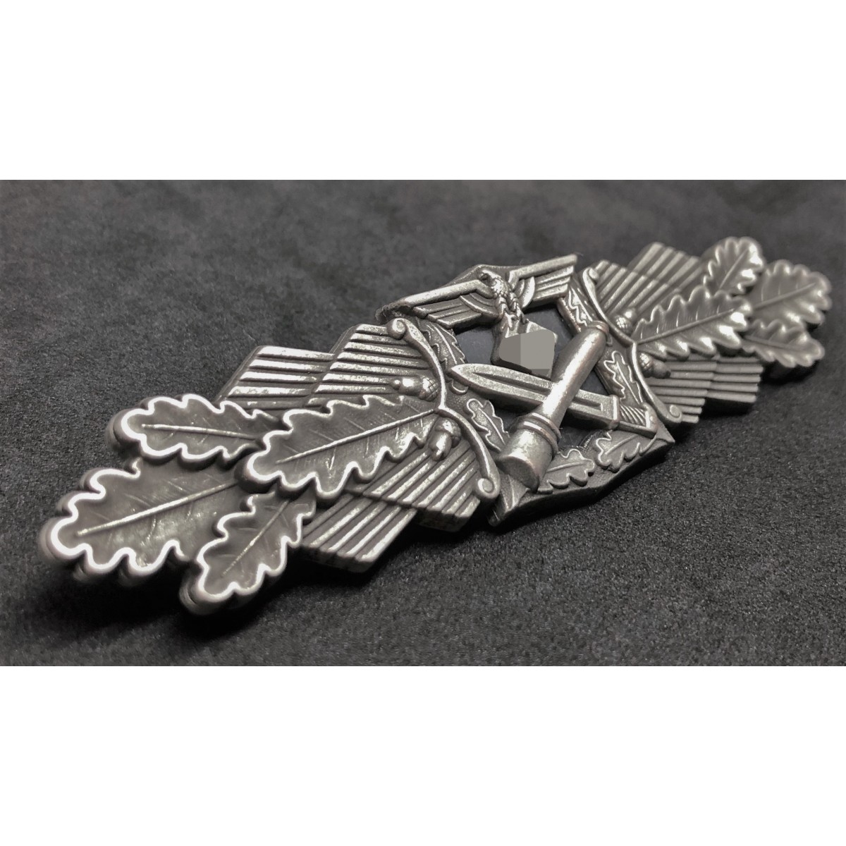 The Close Combat Clasp (German: Nahkampfspange) is a German military award instituted on 25 November 1942 for achievement in hand-to-hand fighting in close quarters. The Close Combat Clasp was worn above the upper left uniform pocket. The clasp was die-cast and made of either tombac or later zinc, with a slightly curved centerpiece consisting of the national emblem surmounting a crossed bayonet and hand grenade.