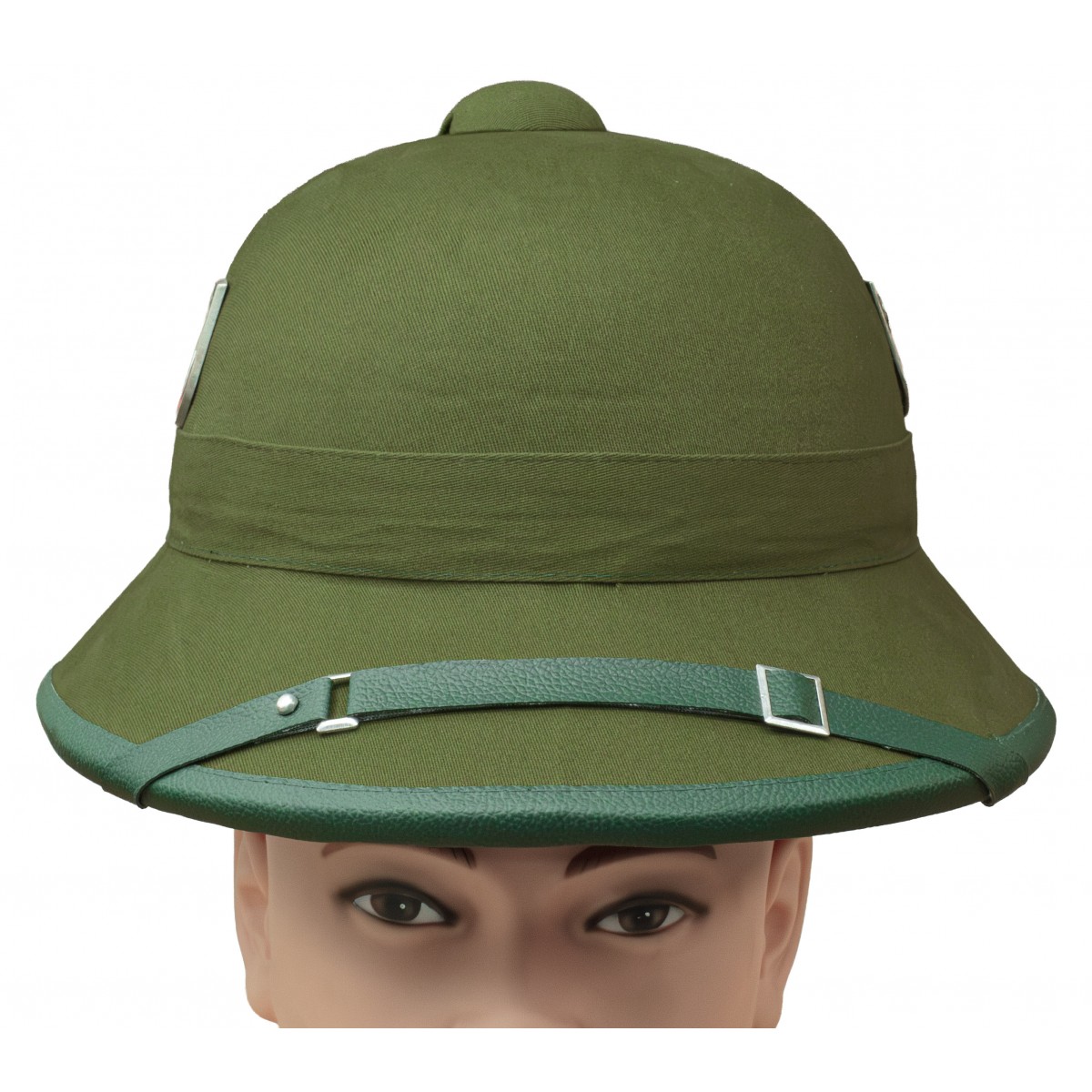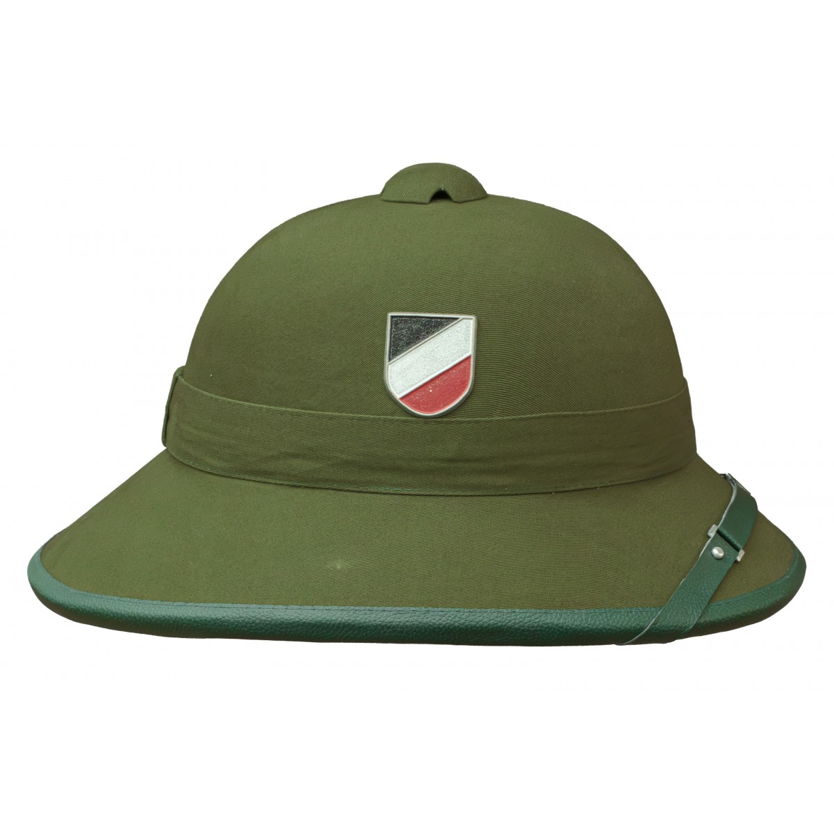German WWII tropical helmet (“Tropenhelm”), developed for operations in hot and desert climates such as North Africa, and closely associated with the Afrika Korps. This helmet represents one of the most recognizable elements of German tropical military equipment.