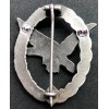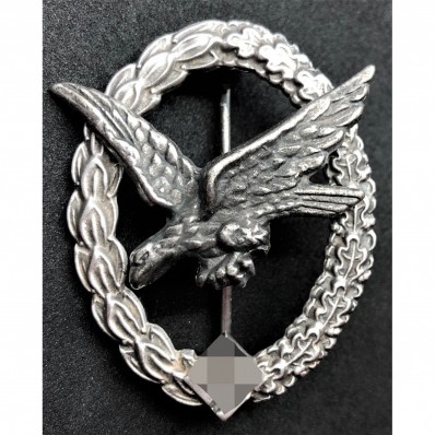 The badge came into existence on 22 June 1942. It was to be placed on the lower part of the left breast side of the tunic, below the Iron Cross. The badge was oval in shape and had a silver-plated outside wreath around the rim. The middle of the wreath had a national eagle in flight. The polished eagle was also silver-plated but made of "oxydized old-silver" giving it a different shade of color than the polished wreath. The right side of the wreath was composed of laurel leaves and the left side of oak leaves. A Nazi swastika was at the bottom middle of the outside wreath. The badge was originally made of aluminum, however, in the latter stages of World War II it was made of aluminum, zinc or metal alloy. There was also a cloth version of the badge which could be worn on a flight jacket.