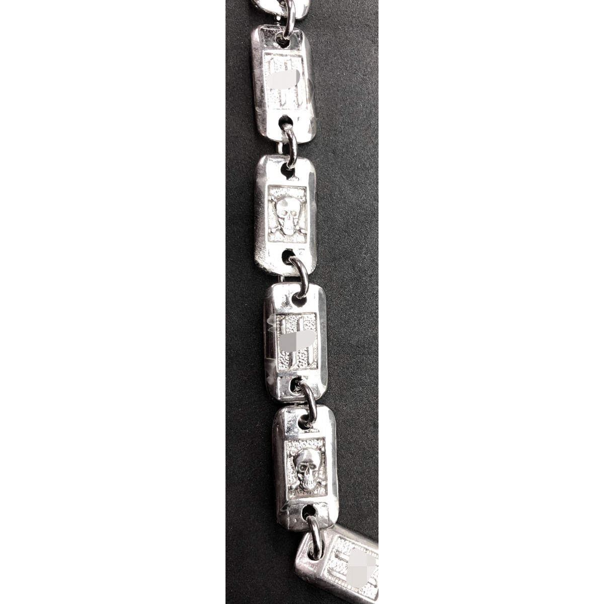 Catena delle SS interamente realizzata a mano, composta da 25 parti unite tra loro da anelli circolari.Alle due estremità si trovano due ganci triangolari per attaccare la catena ad una Daga delle SS o ad una Gorgiera delle SS.