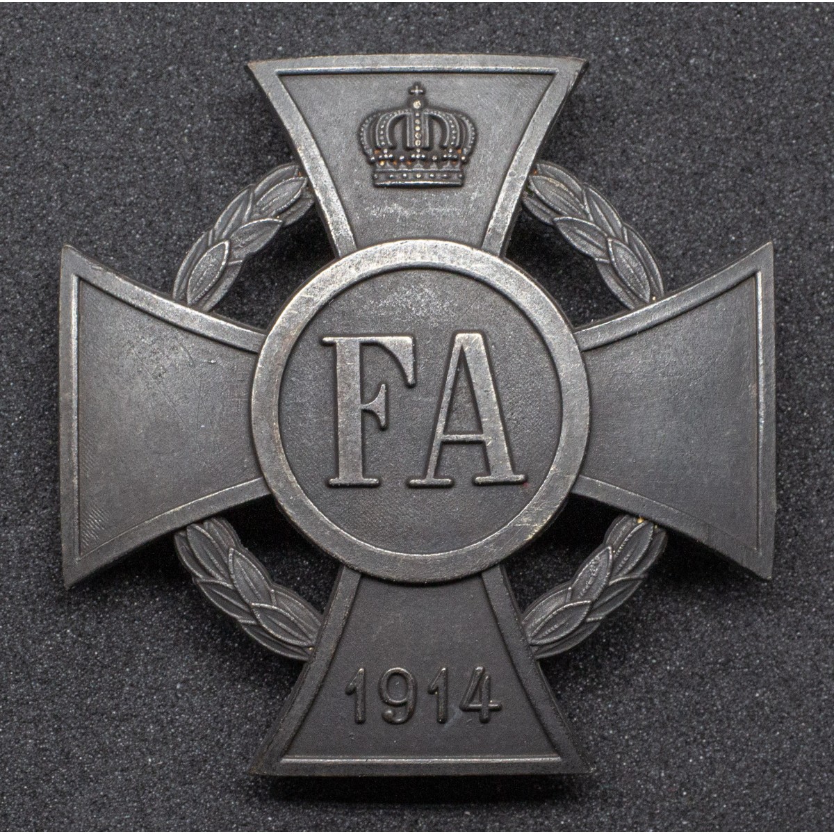 Croce di I Classe dell’Ordine Friedrich August, istituita dal Granduca di Oldenburg nel 1914 per premiare atti di valore e merito in guerra. Fissata con spilla sul petto, era concessa a ufficiali e sottufficiali dell’esercito imperiale tedesco distintisi sul fronte durante la Prima guerra mondiale.
