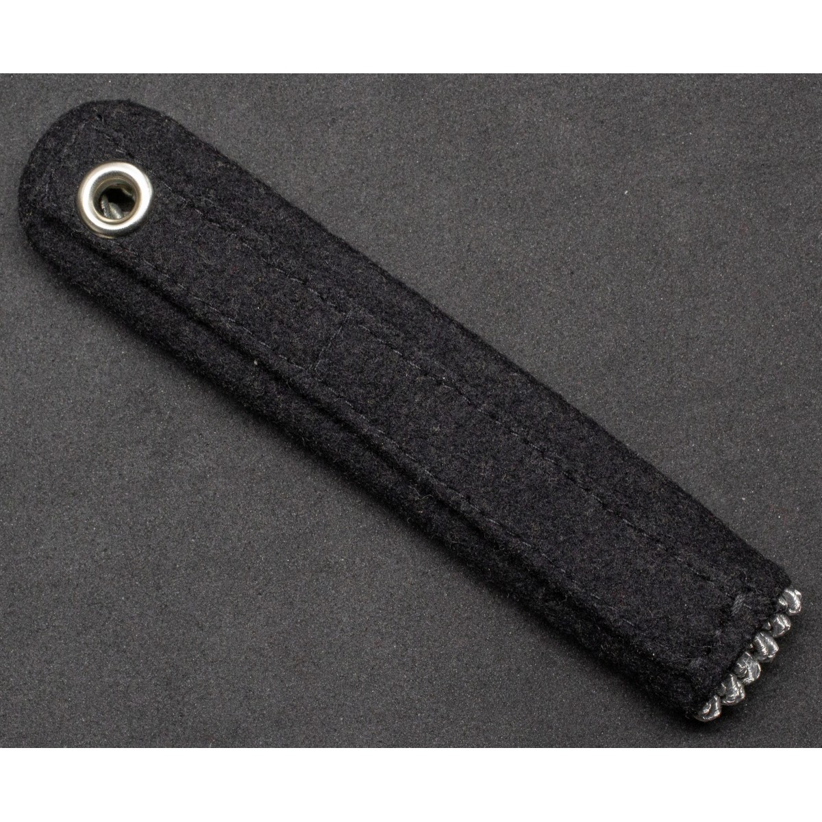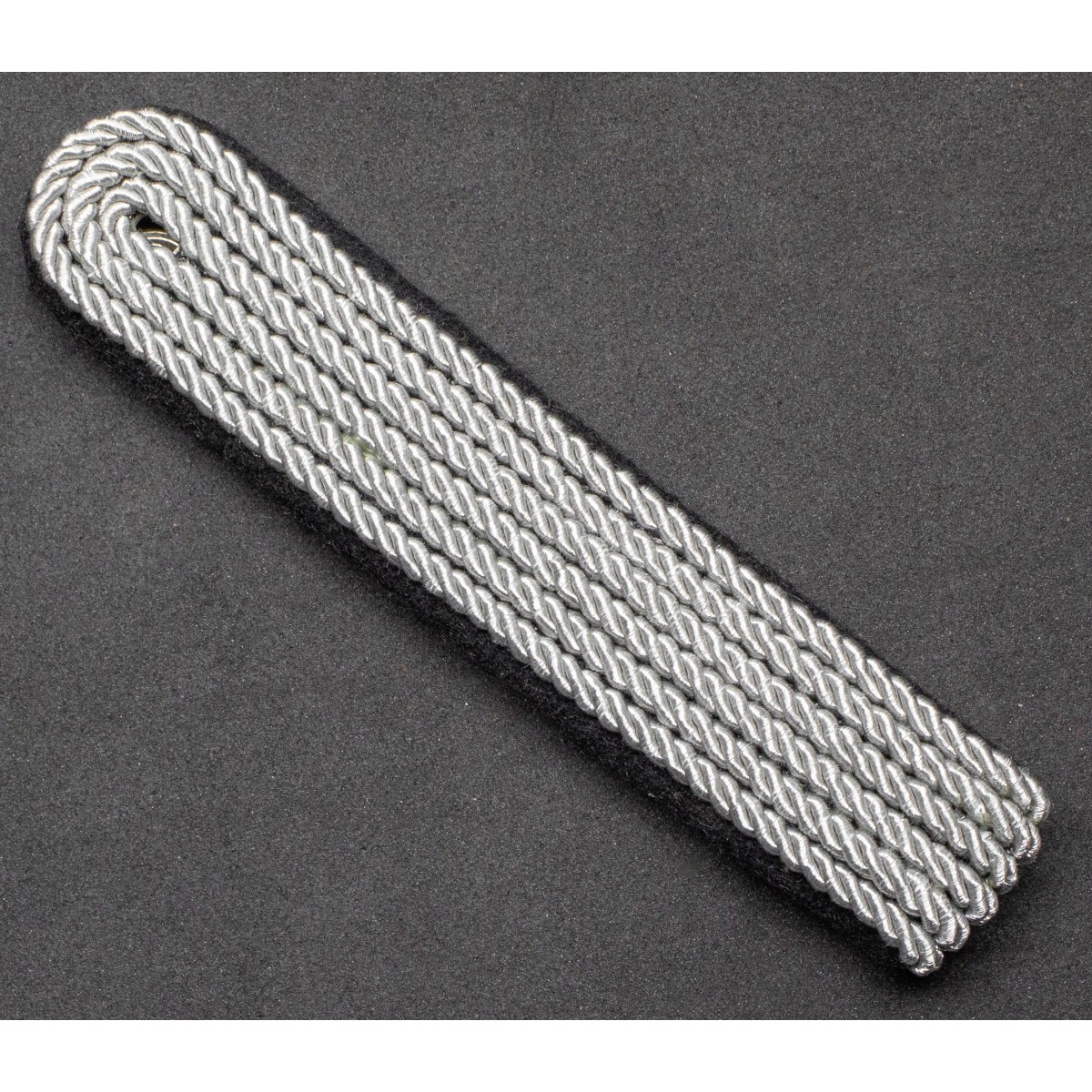 Spallina dell’Allgemeine SS in lana nera con anima in cartoncino, bordata da tre fili intrecciati e arrotolati in alluminio argentato disposti a U. Rappresenta i gradi da Untersturmführer a Hauptsturmführer.