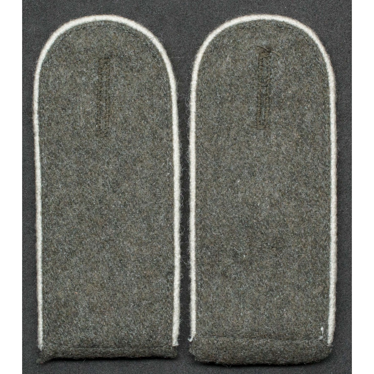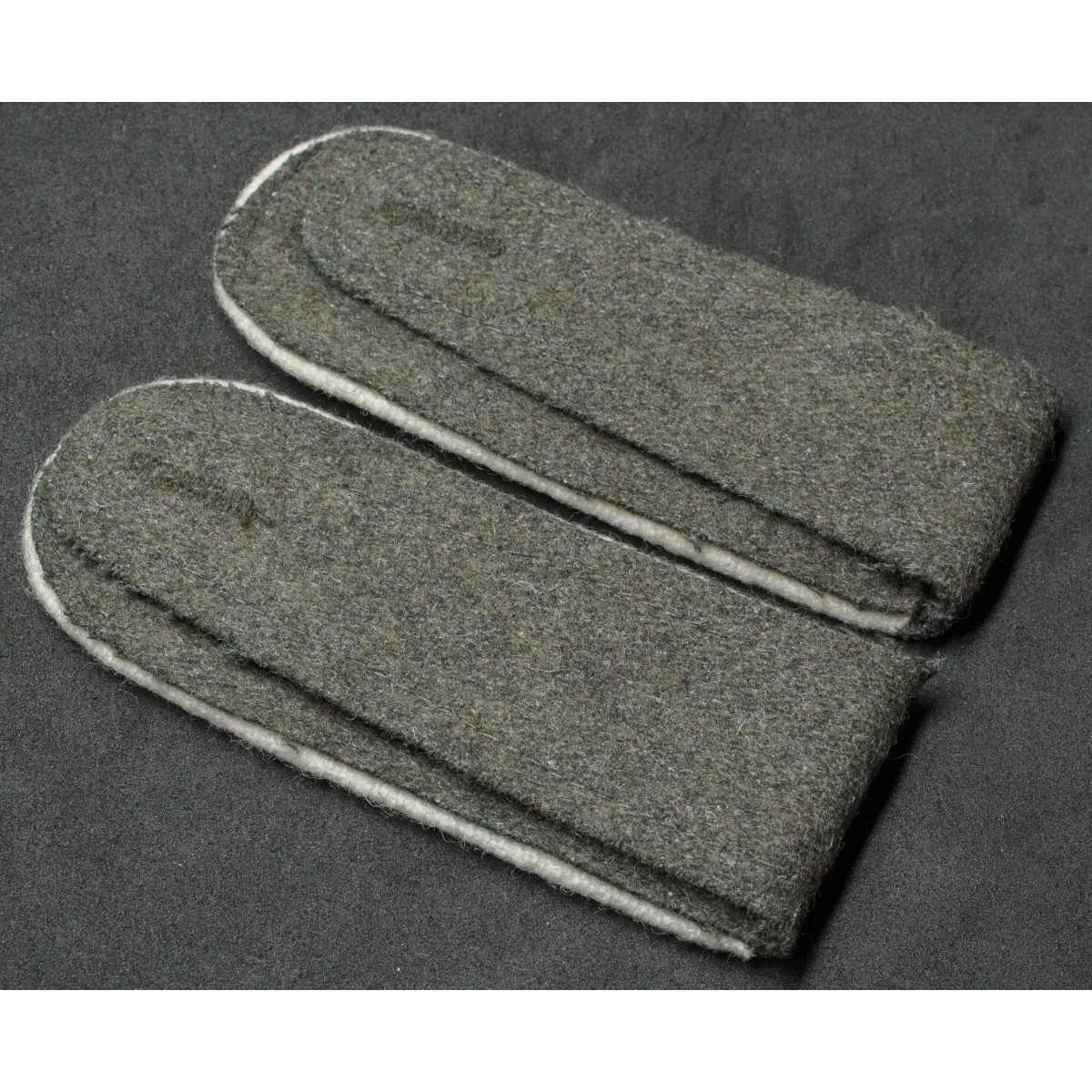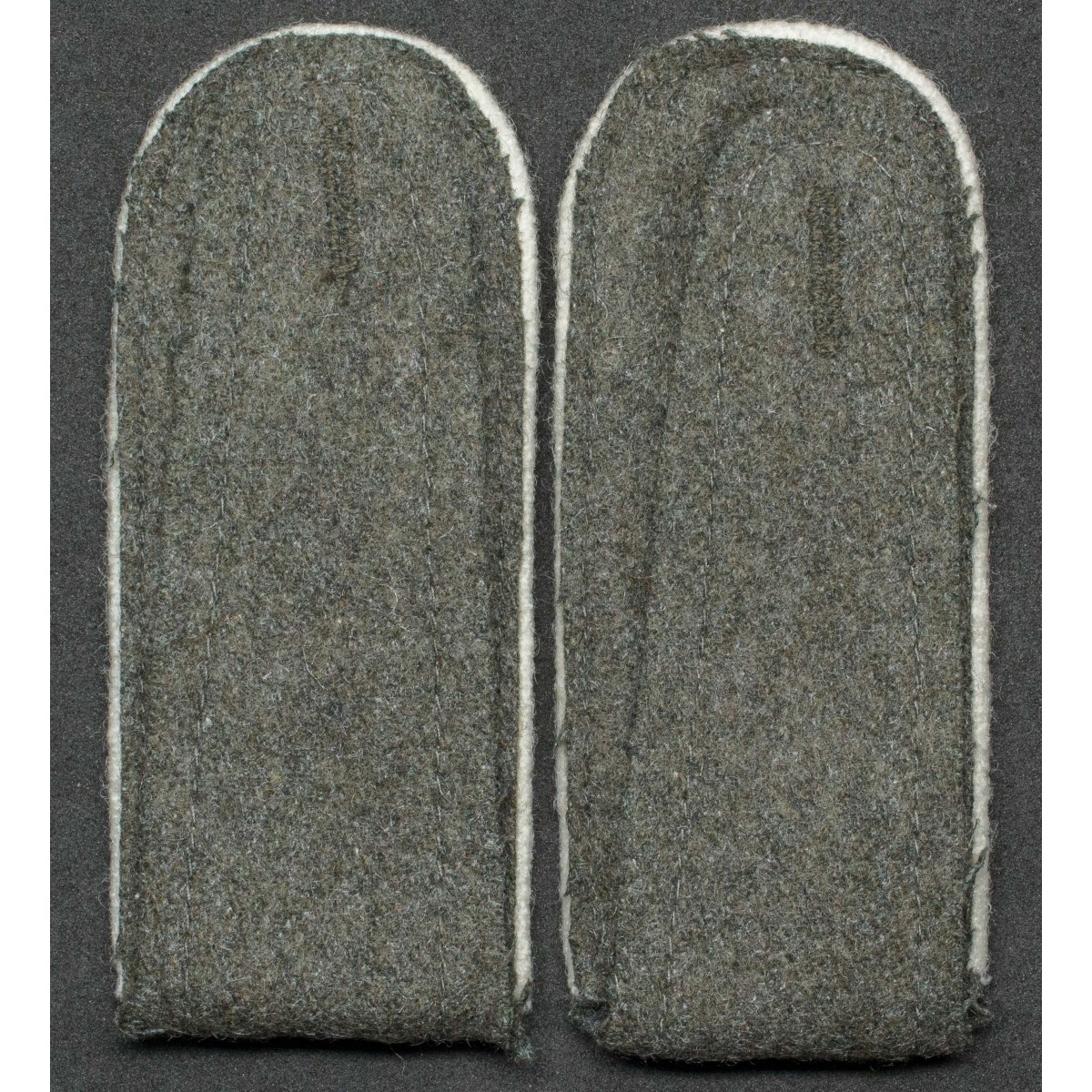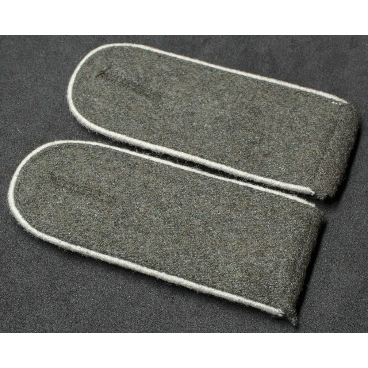 Coppia di spalline per soldati di truppa (Enlisted Men) della fanteria della Wehrmacht. Realizzate in panno feldgrau con piping bianco, colore distintivo delle unità di fanteria tedesche. Destinate alle uniformi da campo e da servizio, identificavano il personale appartenente ai reparti di fanteria durante la Seconda guerra mondiale.