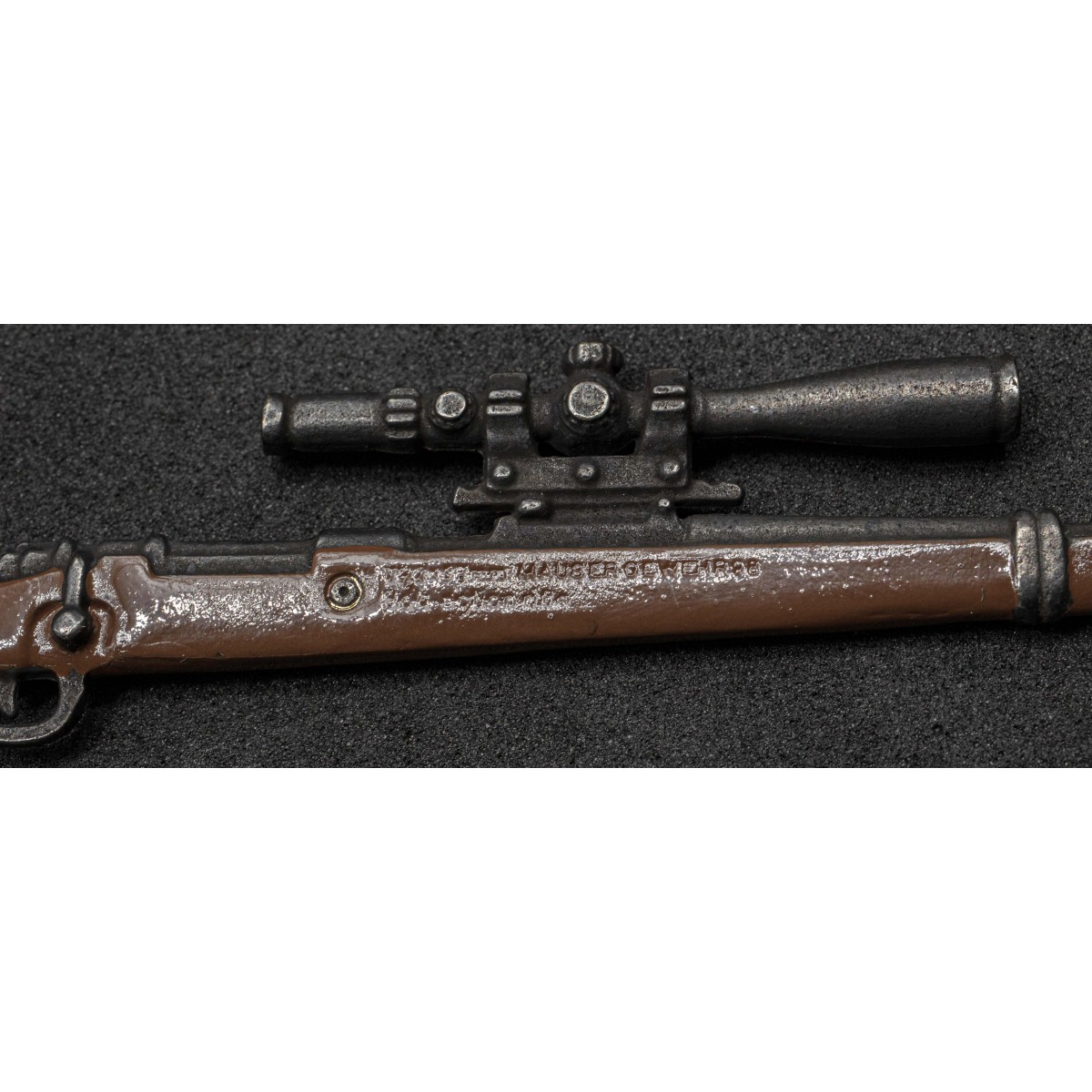 Riproduzione in scala del Mauser Karabiner 98k (K98), uno dei fucili bolt-action più iconici e diffusi del XX secolo, adottato ufficialmente dalla Wehrmacht nel 1935 come evoluzione del precedente Gewehr 98. Progettato sulla base del sistema Mauser a otturatore girevole-scorrevole, rappresenta uno degli standard più affidabili e longevi nella storia delle armi militari.