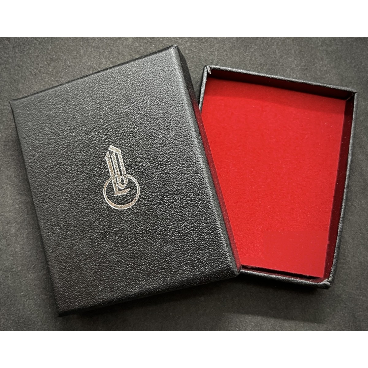 Black, presentational LDO Box, with initialled emblem and smart, red interior.