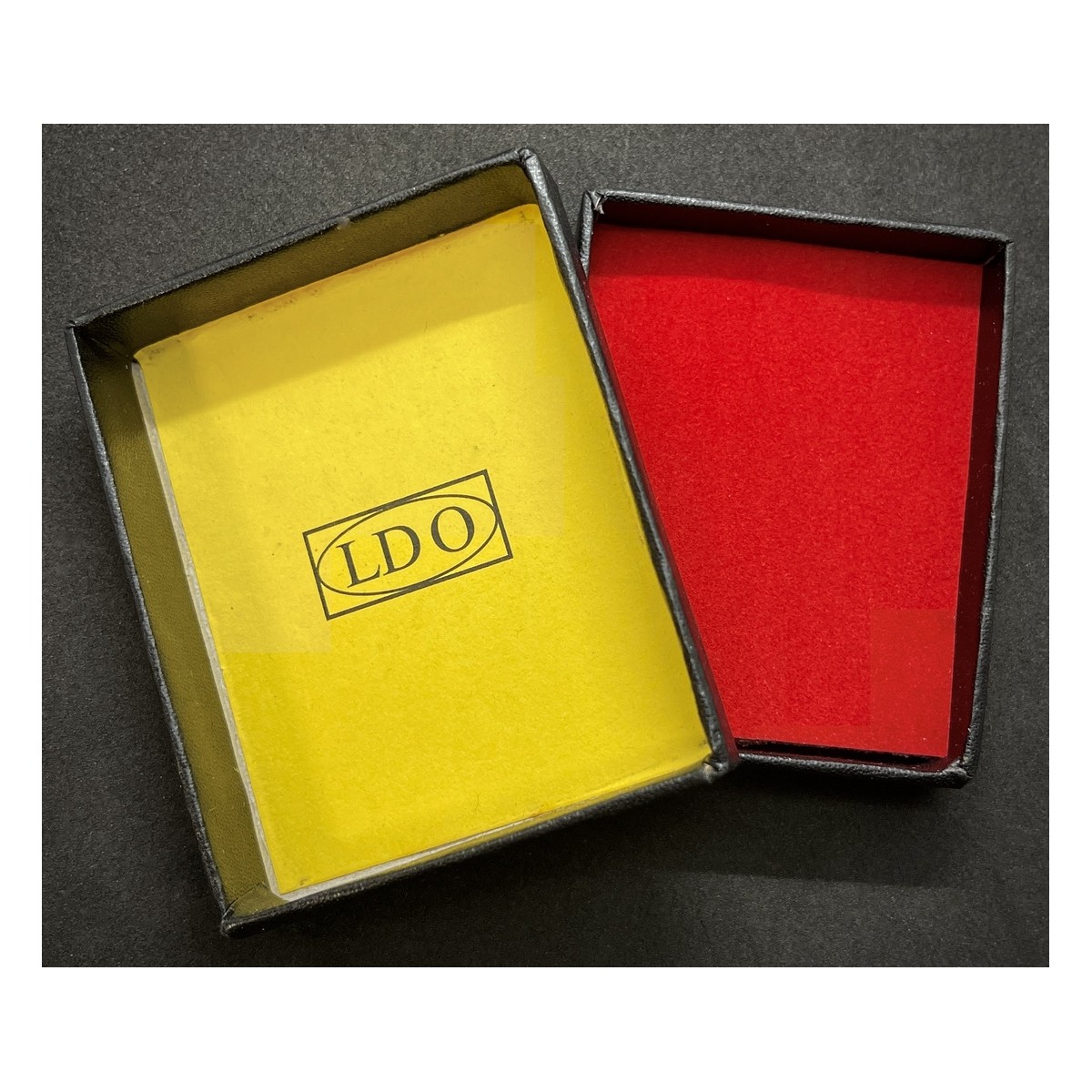 Scatolina LDO nera di presentazione, con emblema siglato e interni rossi.